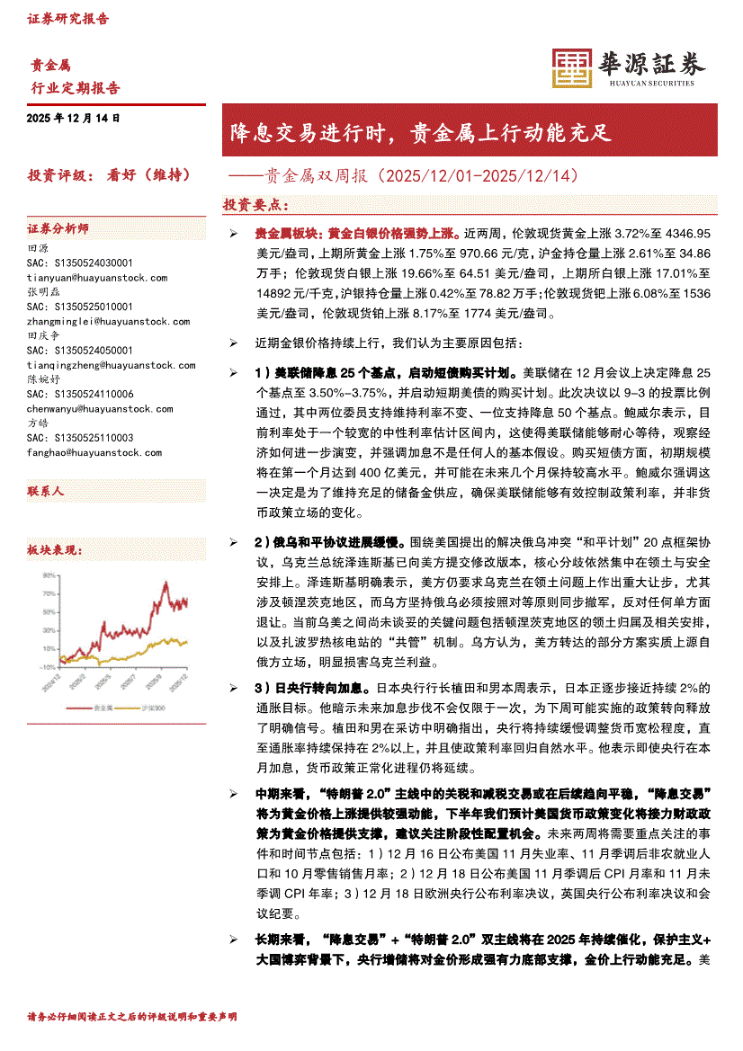 贵金属行业:华源证券-贵金属行业双周报:降息交易进行时,贵金属上行动能充足-251214
