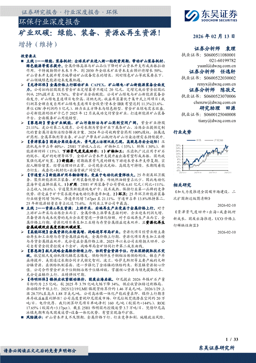 环保行业:东吴证券-环保行业深度报告:矿业双碳,绿能、装备、资源&再生资源!-260213