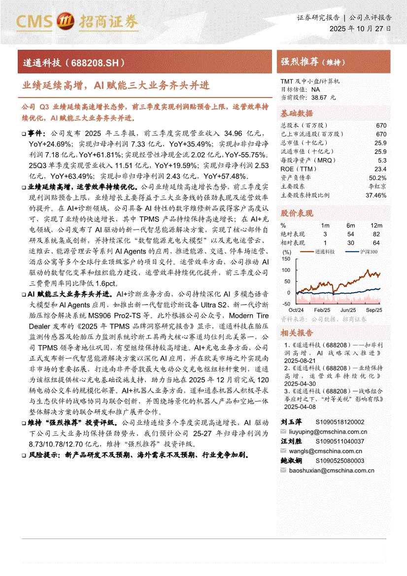 道通科技:招商证券-道通科技-688208-业绩延续高增,AI赋能三大业务齐头并进-251027