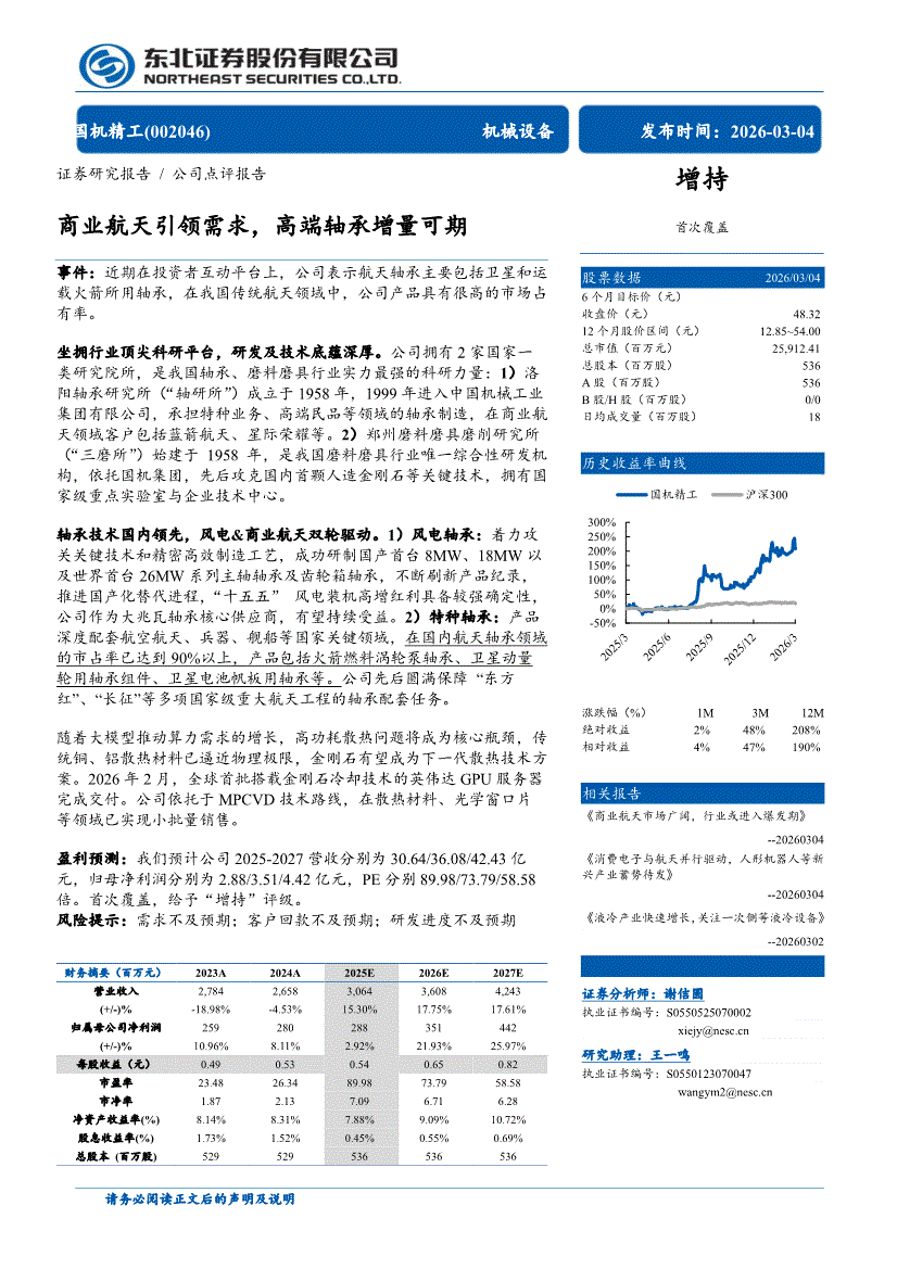 国机精工:东北证券-国机精工-002046-商业航天引领需求,高端轴承增量可期-260304