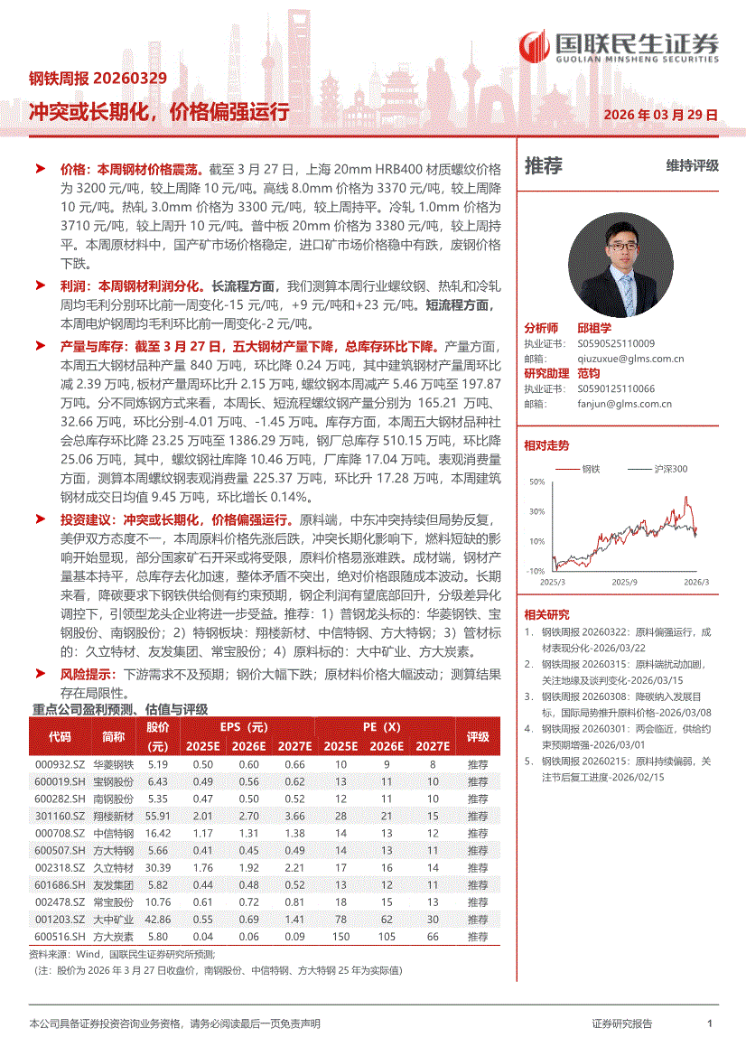 钢铁行业:国联民生证券-钢铁行业周报:冲突或长期化,价格偏强运行-260329