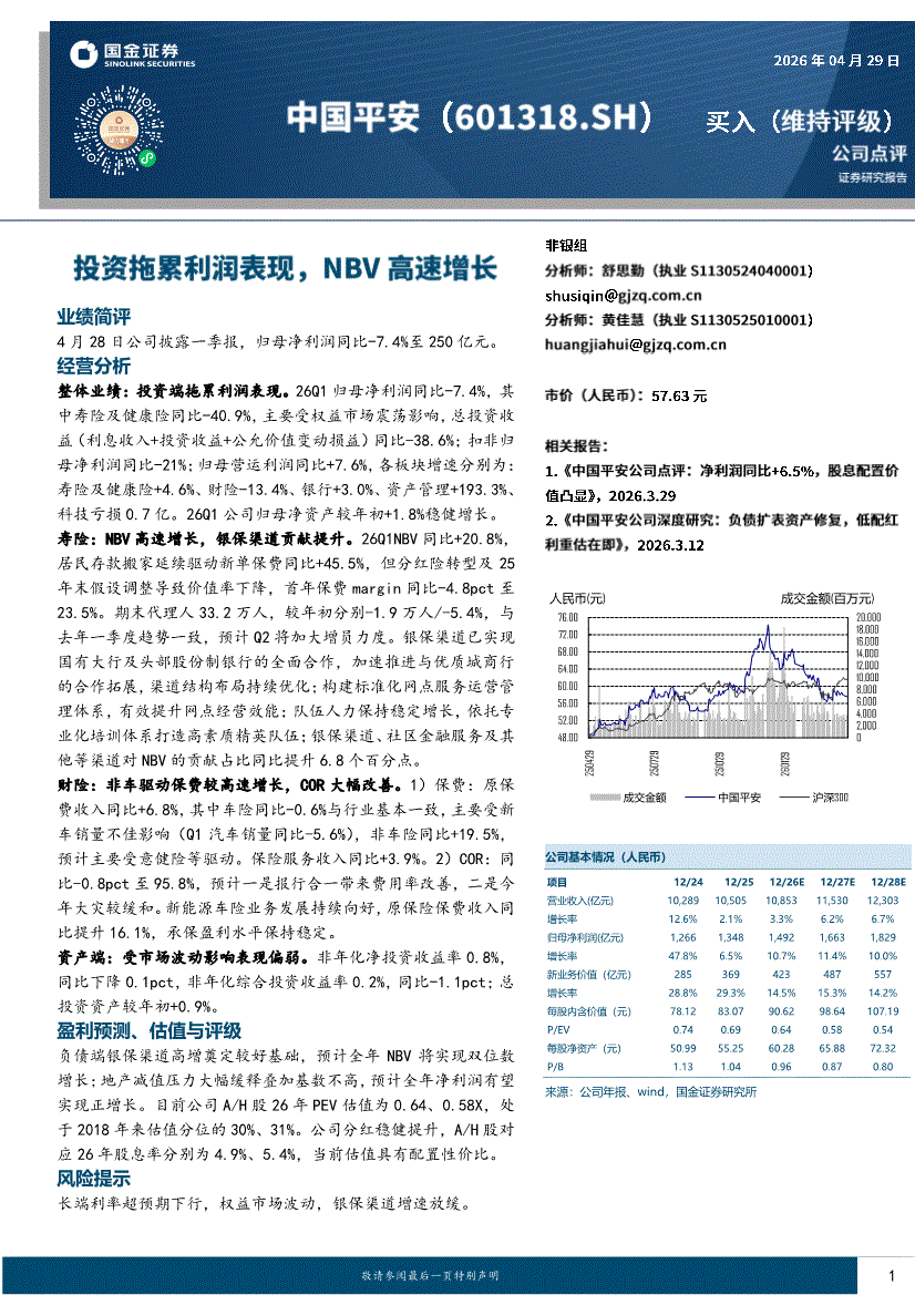 中国平安:国金证券-中国平安-601318-投资拖累利润表现,NBV高速增长-260429