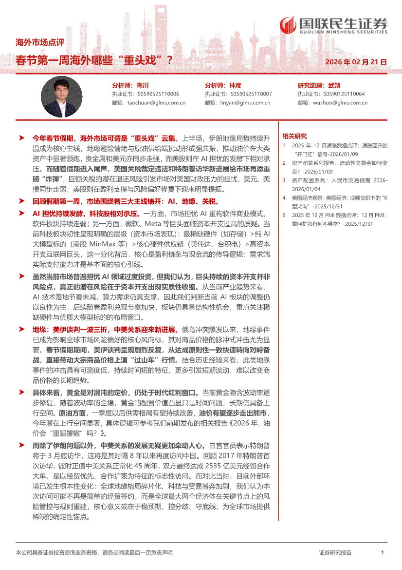 国联民生证券-海外市场点评:春节第一周海外哪些“重头戏”?-260221