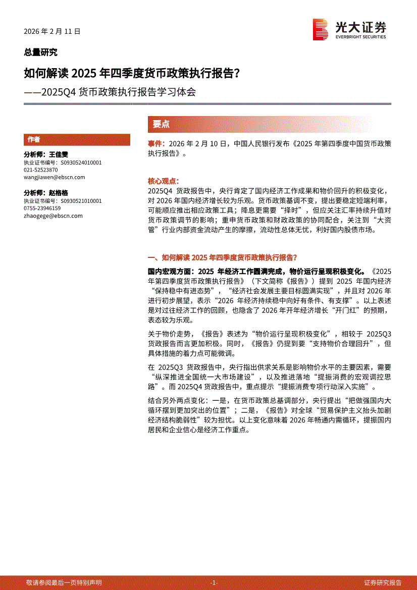 光大证券-2025Q4货币政策执行报告学习体会:如何解读2025年四季度货币政策执行报告?-260211