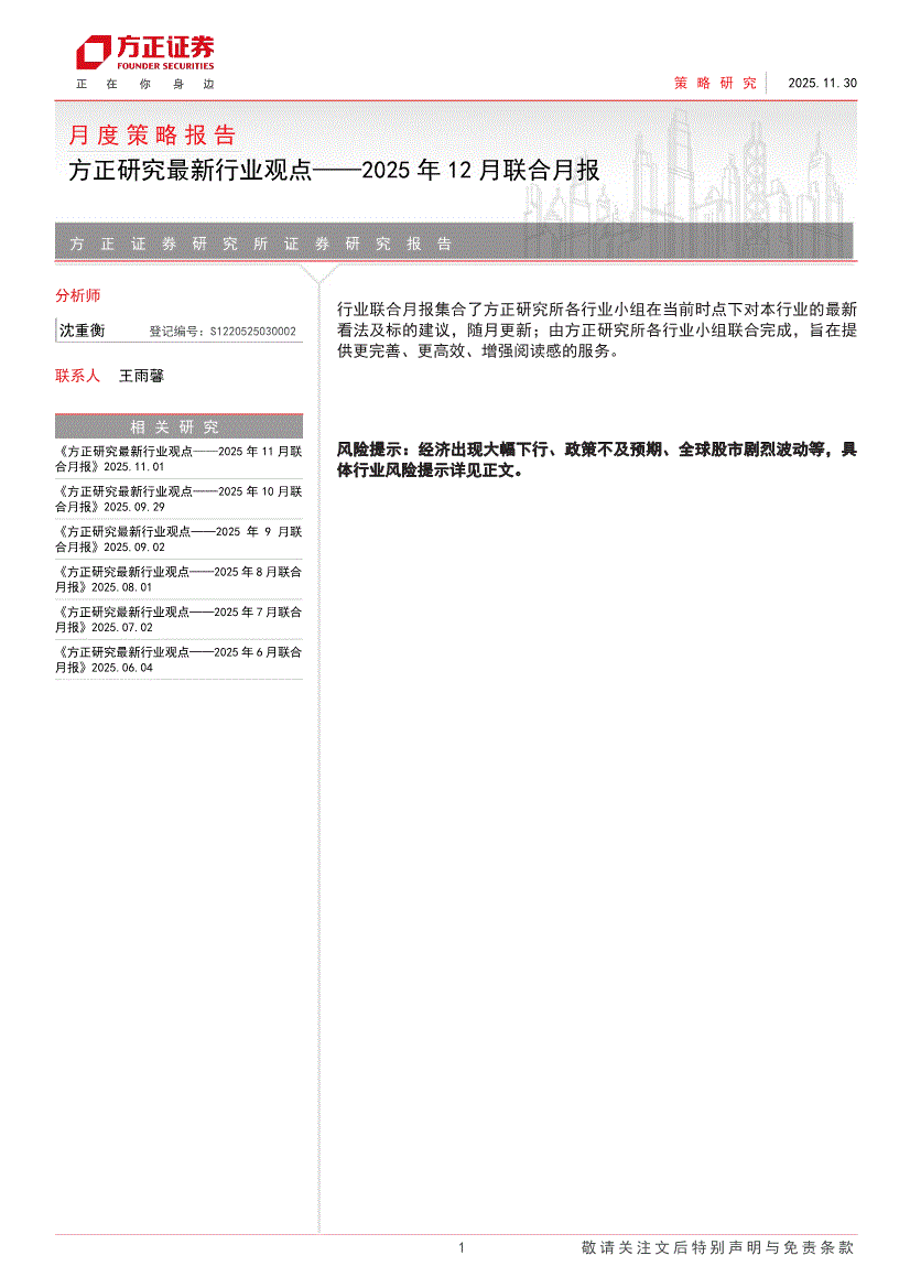方正证券-方正研究最新行业观点——2025年11月联合月报-251031