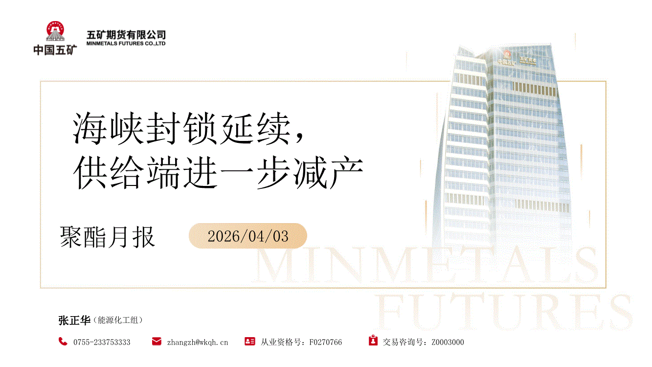五矿期货-聚酯月报:海峡封锁延续,供给端进一步减产-260403