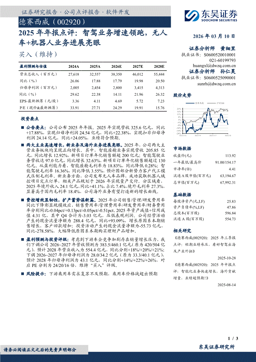 德赛西威:东吴证券-德赛西威-002920-2025年年报点评:智驾业务增速领跑,无人车+机器人业务进展亮眼-260310