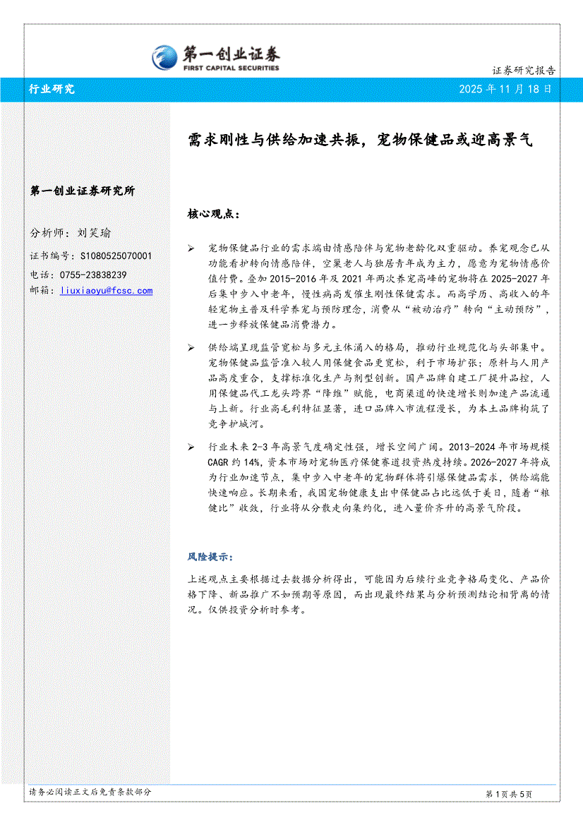 宠物保健品行业:第一创业-宠物保健品行业:需求刚性与供给加速共振,宠物保健品或迎高景气-251118