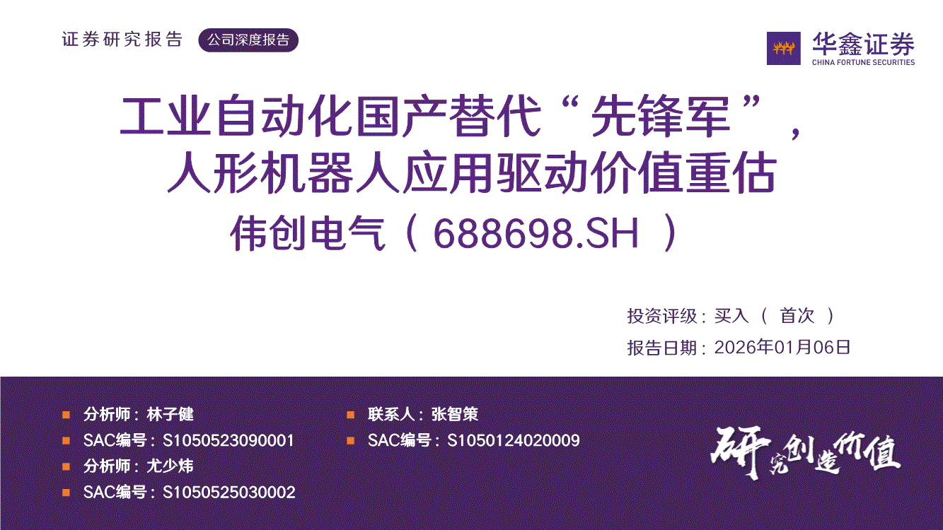 伟创电气:华鑫证券-伟创电气-688698-工业自动化国产替代“先锋军”,人形机器人应用驱动价值重估-260106