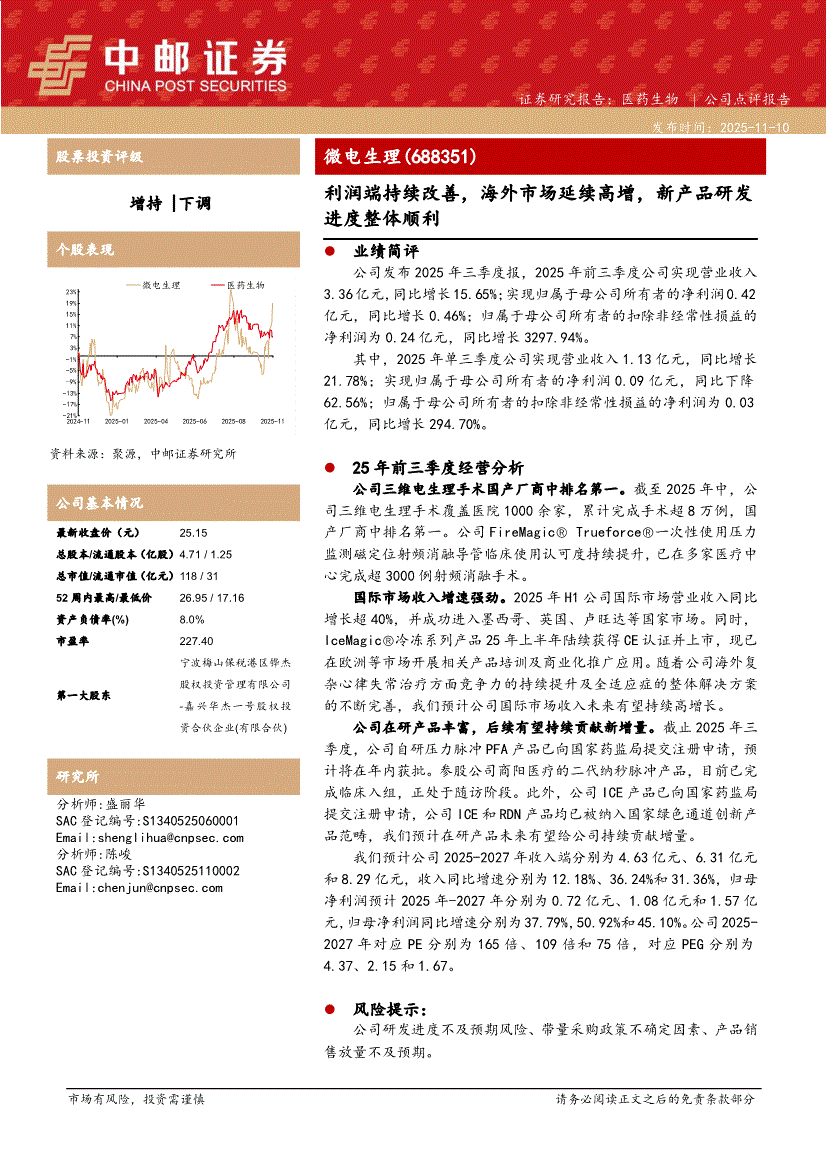 微电生理:中邮证券-微电生理-688351-利润端持续改善,海外市场延续高增,新产品研发进度整体顺利-251110