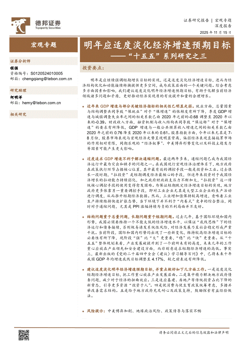 德邦证券-“十五五”系列研究之三:明年应适度淡化经济增速预期目标-251115