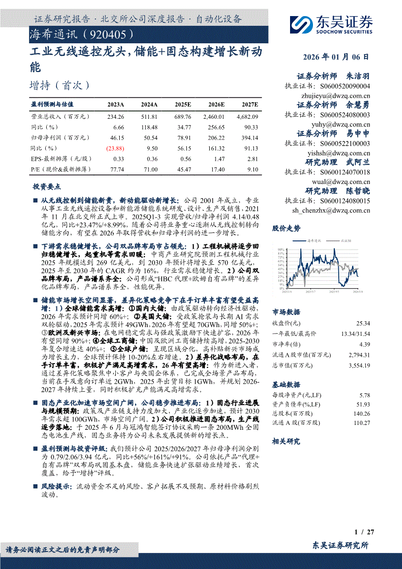 海希通讯:东吴证券-海希通讯-920405-工业无线遥控龙头,储能+固态构建增长新动能-260106