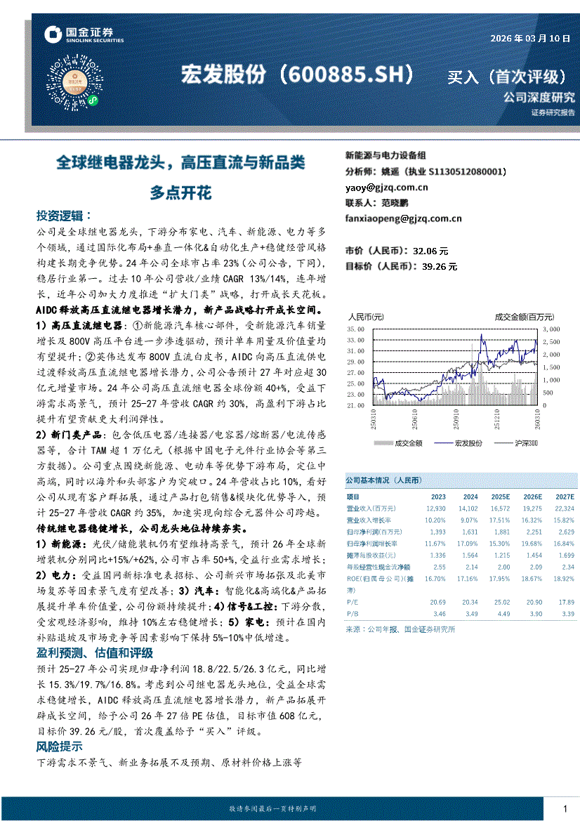宏发股份:国金证券-宏发股份-600885-全球继电器龙头,高压直流与新品类多点开花-260310