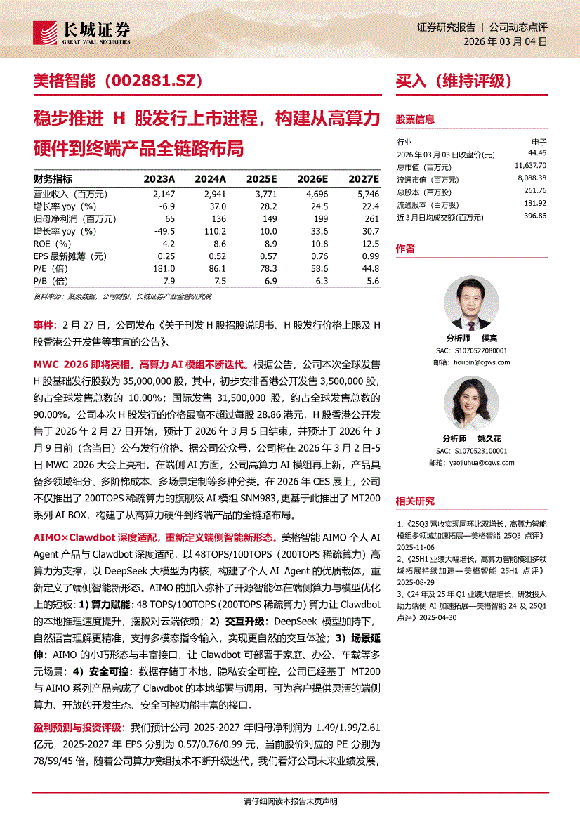 美格智能:长城证券-美格智能-002881-稳步推进H股发行上市进程,构建从高算力硬件到终端产品全链路布局-260304