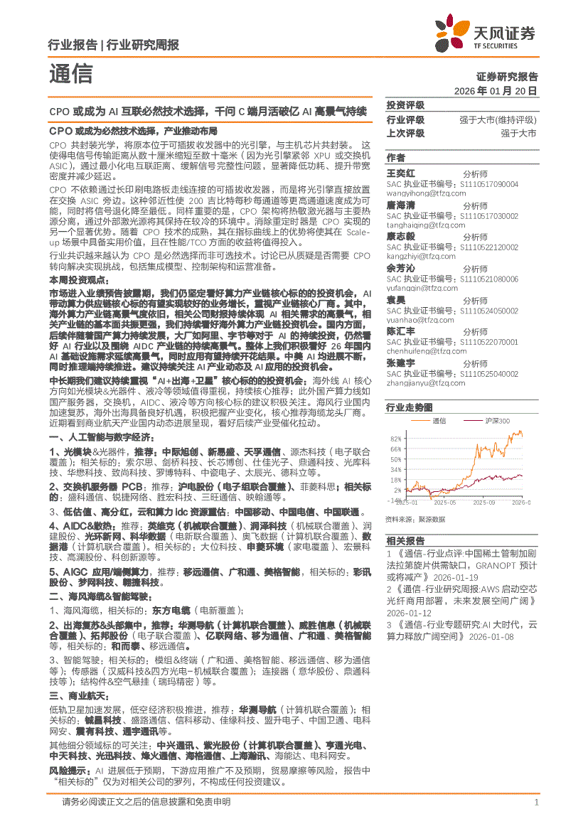 通信行业:天风证券-通信行业研究周报:CPO或成为AI互联必然技术选择,千问C端月活破亿AI高景气持续-260120