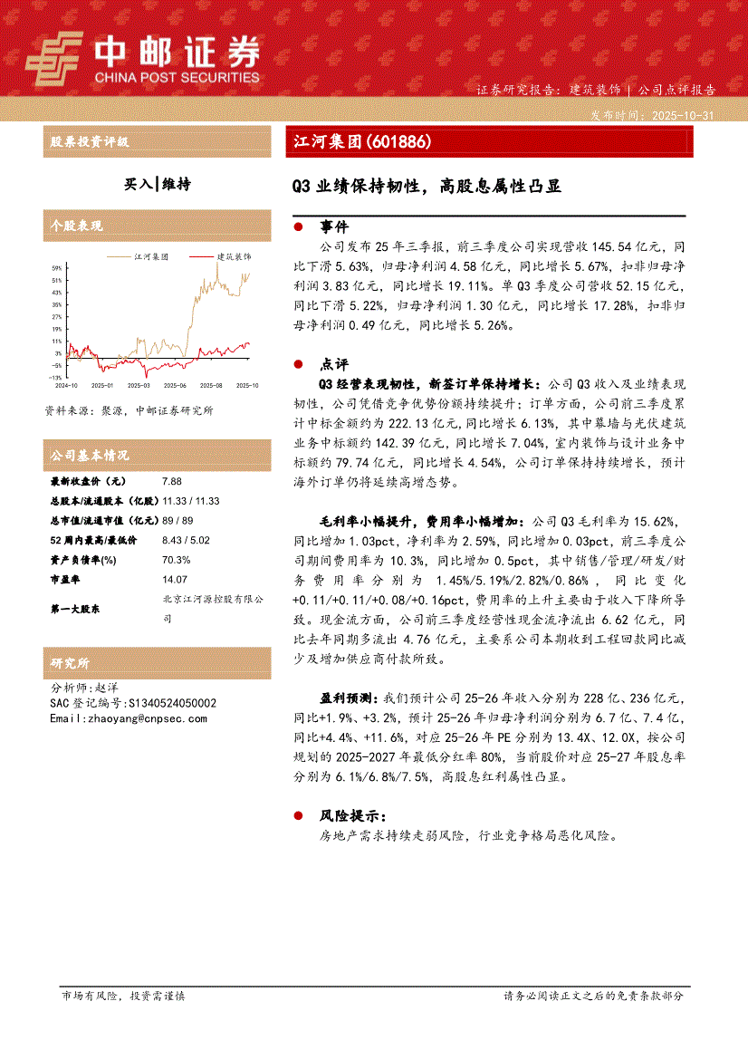 江河集团:中邮证券-江河集团-601886-Q3业绩保持韧性,高股息属性凸显-251031